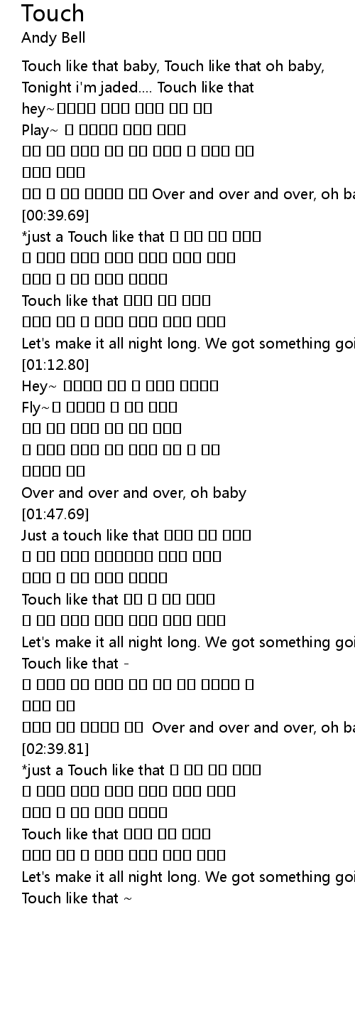 | [00:00.00] | Touch like that baby, Touch like that oh baby, |