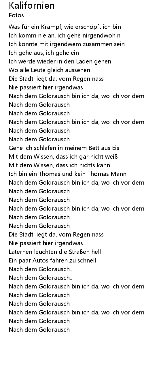 | Nach dem Goldrausch bin ich da, wo ich vor dem Goldrausch war | |