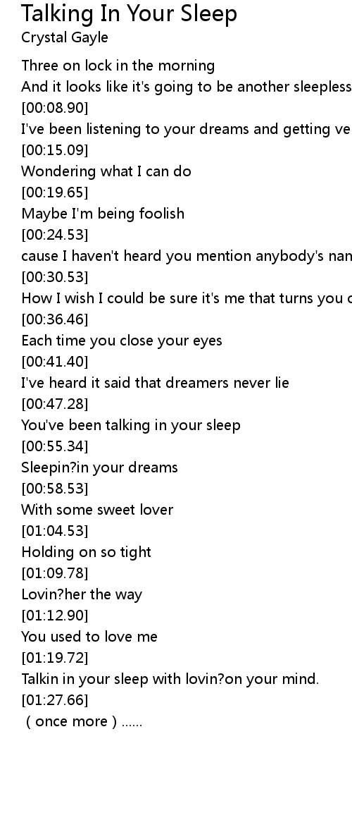 | [01:21.90] | Talkin in your sleep with lovin? on your mind. |
