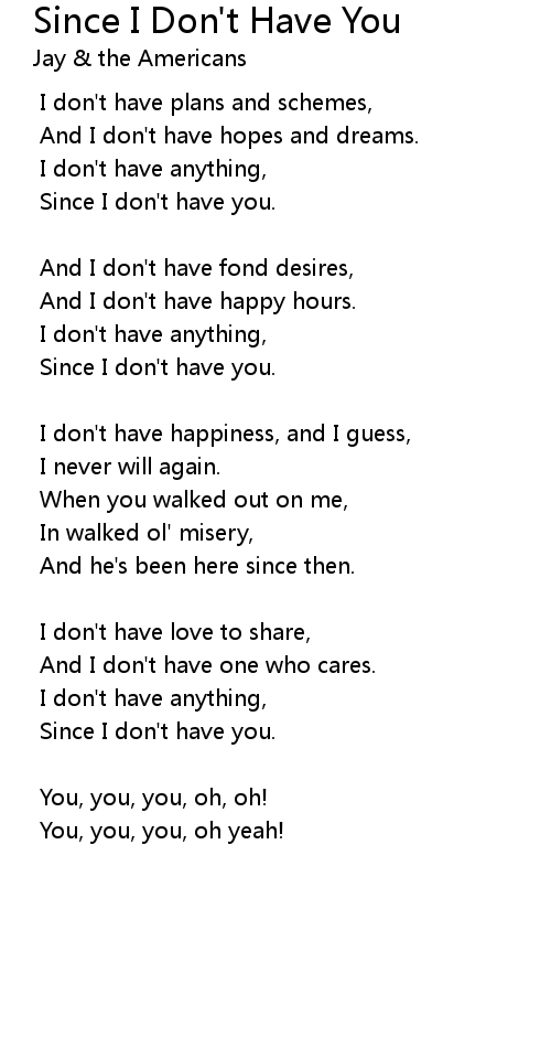 | Since I don' t have you. | |