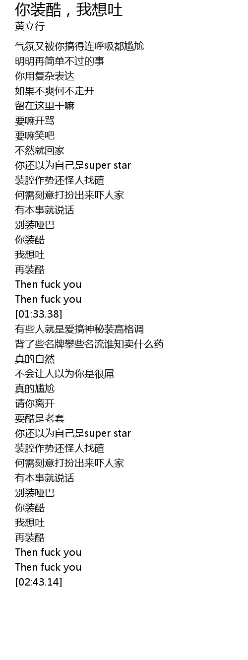 | [02:03.66] | shuǎ kù shì lǎo tào |