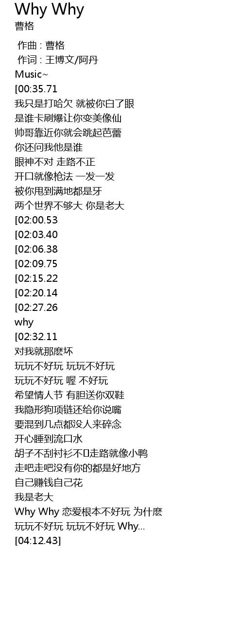 | [03:03.38] | wán wán bù hǎo wán wán wán bù hǎo wán Why... |