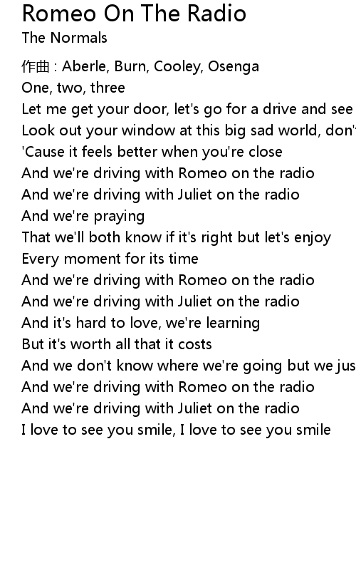 | Song | Romeo On The Radio |