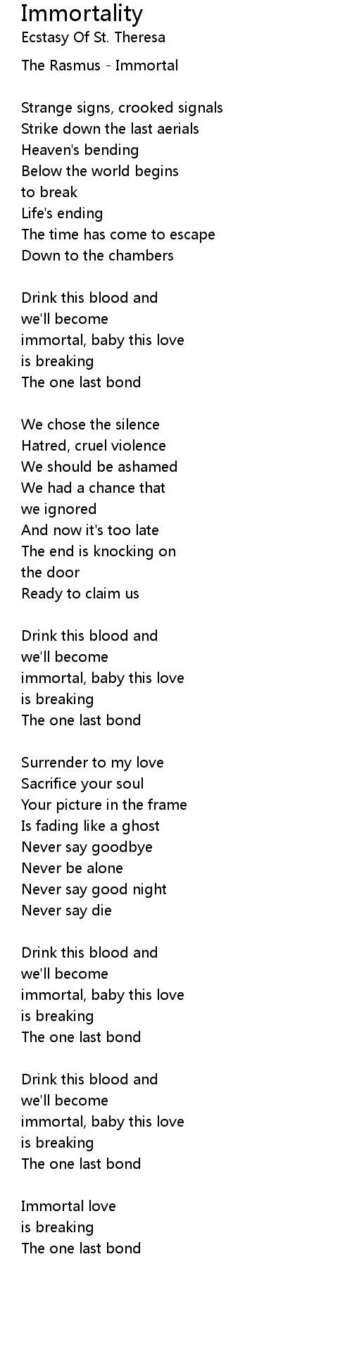 immortal, baby this love |