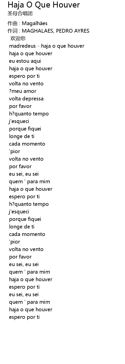 | 作词 : MAGHALAES, PEDRO AYRES | |