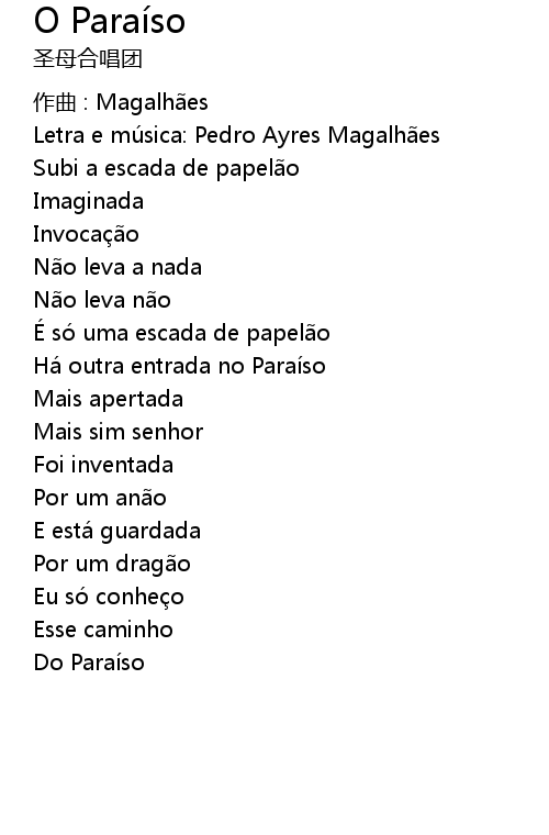 | Letra e mú sica: Pedro Ayres Magalh es | |