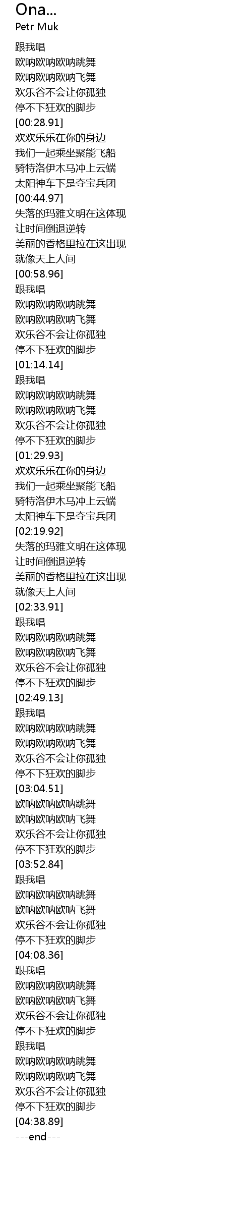 | [04:28.41] | 欧呐欧呐欧呐飞舞 |