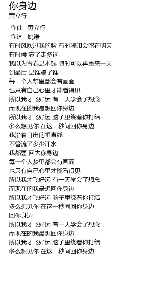 | [02:22.000] | wǒ dōu yào huí qù nǐ shēn biān |