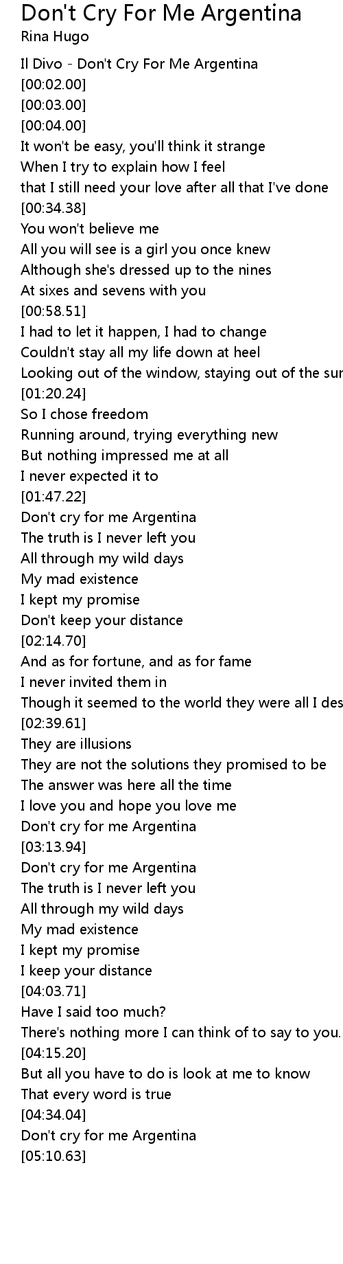 | [00:01.00] | Il Divo - Don't Cry For Me Argentina |