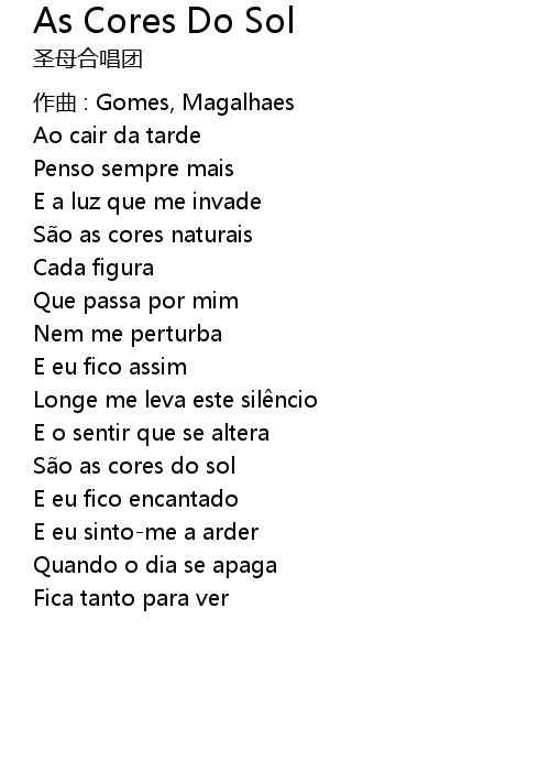 | Song | As Cores Do Sol |