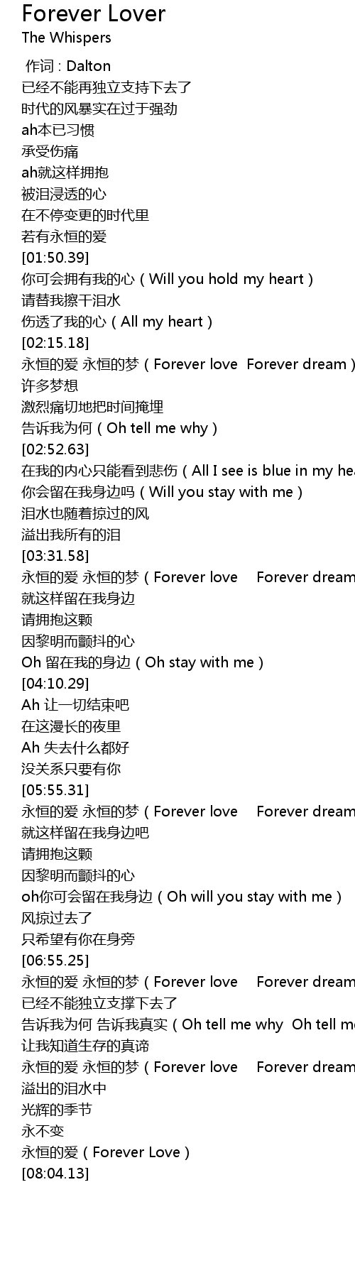 | [06:58.57] | 永恒的爱 永恒的梦(Forever love Forever dream) |
