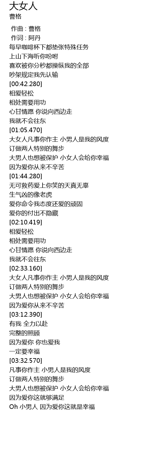 | [02:34.269] | 大女人凡事你作主 小男人是我的风度 |