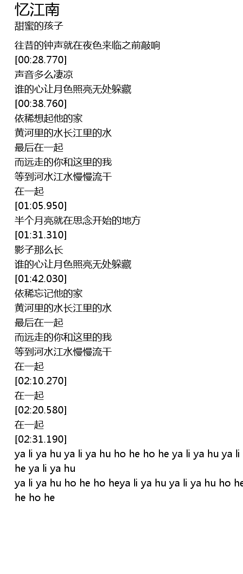 | [03:35.580] | ya li ya hu ho he ho heya li ya hu ya li ya hu ho he ho he ya li ho he ho he |