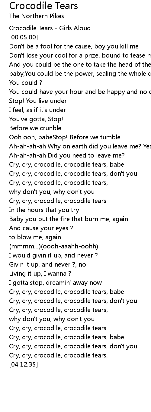 Cry, cry, crocodile, crocodile tears, don't you |
