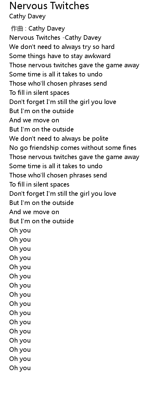 | [00:00.00] | Nervous Twitches Cathy Davey |