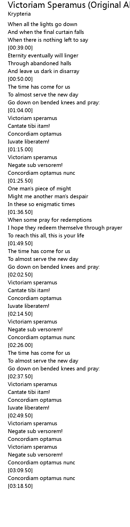 [02:59.50] Victoriam speramus