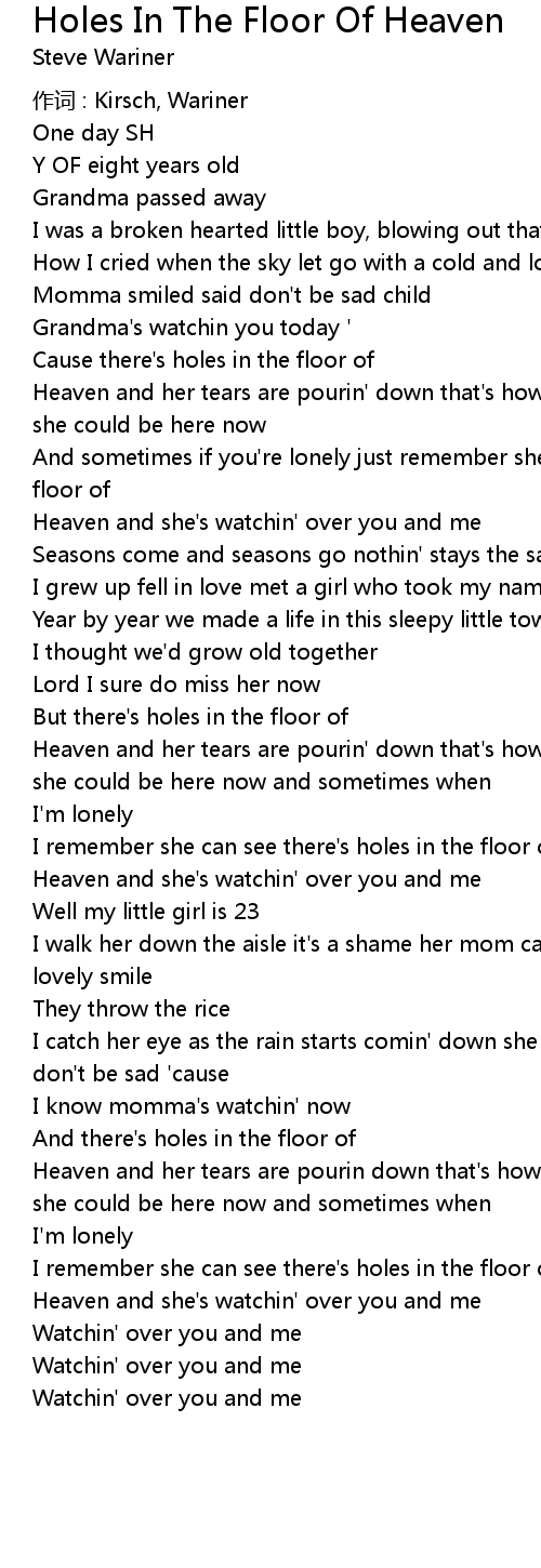 | Song | Holes In The Floor Of Heaven |
