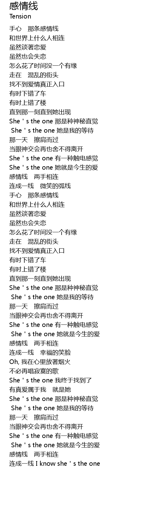 | [02:34.85] | She s the one yǒu yī zhǒng chù diàn gǎn jué |