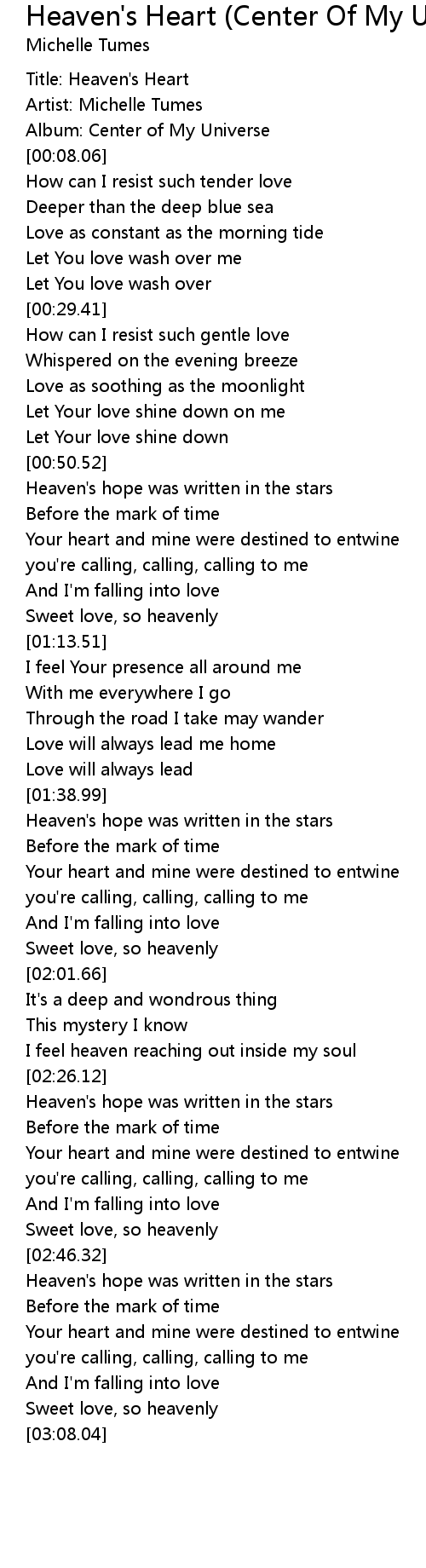 Heaven's Heart (Center Of My Universe Album Version) Lyrics