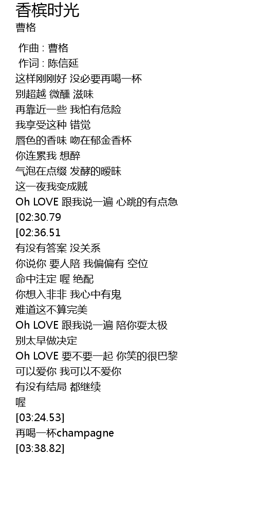 | [03:25.33] | 再喝一杯champagne |