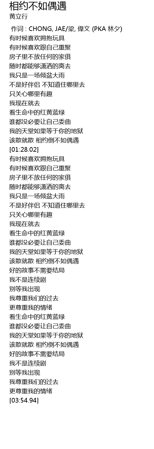| [01:23.10] | 该散就散 相约倒不如偶遇 |