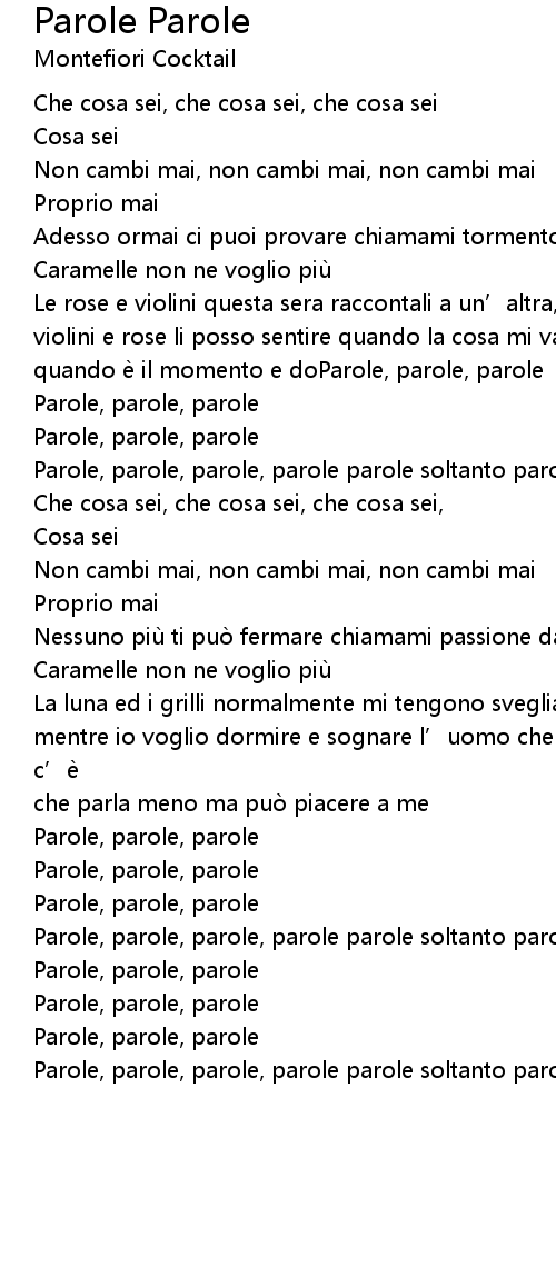 | Parole, parole, parole, parole parole soltanto parole, parole tra noi | |