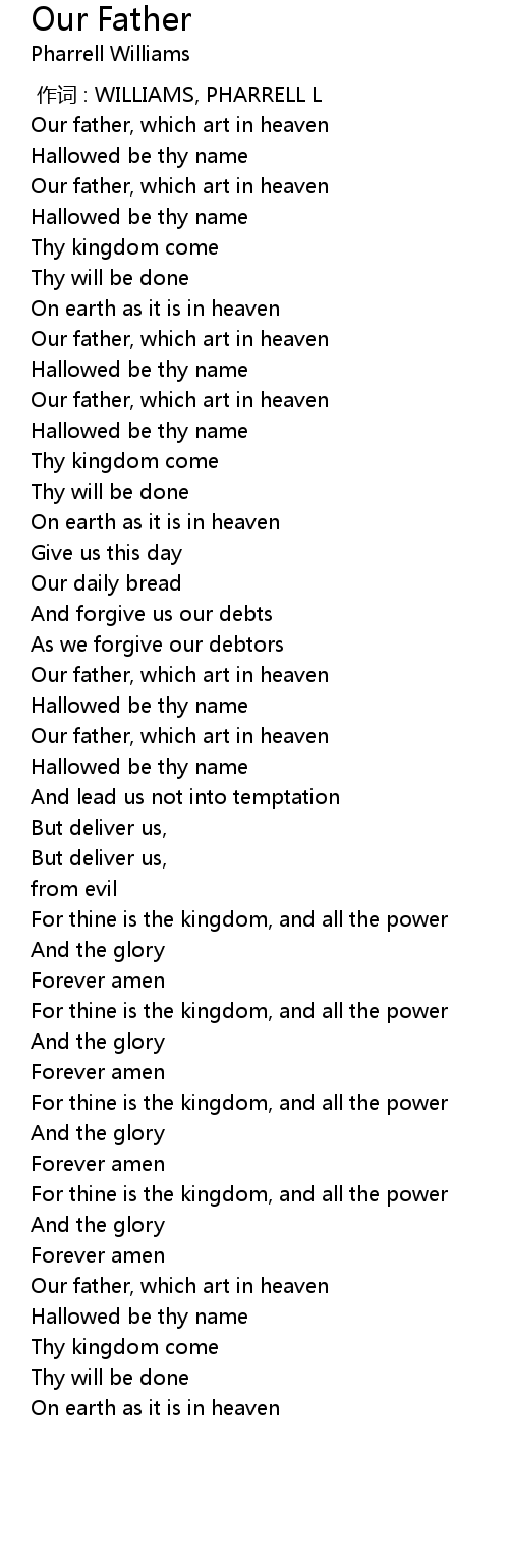 | [00:00.00] | 作词 : WILLIAMS, PHARRELL L |