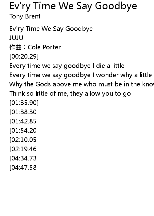 | [00:00.58] | Ev' ry Time We Say Goodbye |