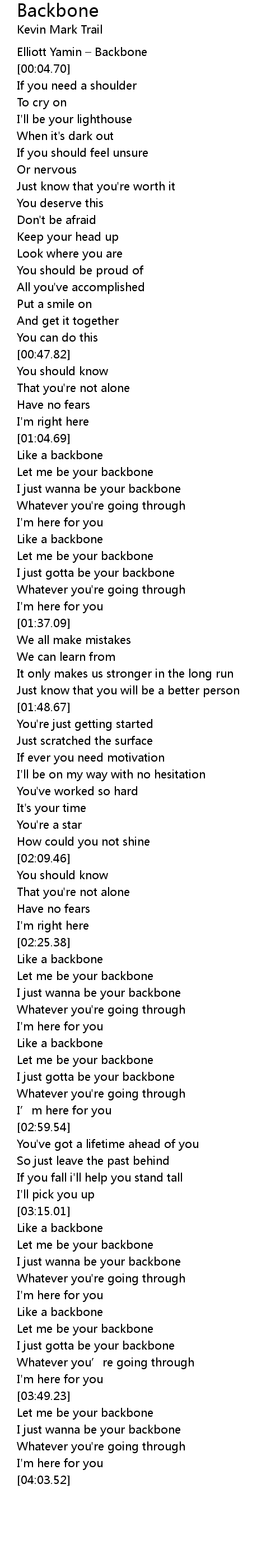 | [03:22.41] | I just wanna be your backbone |