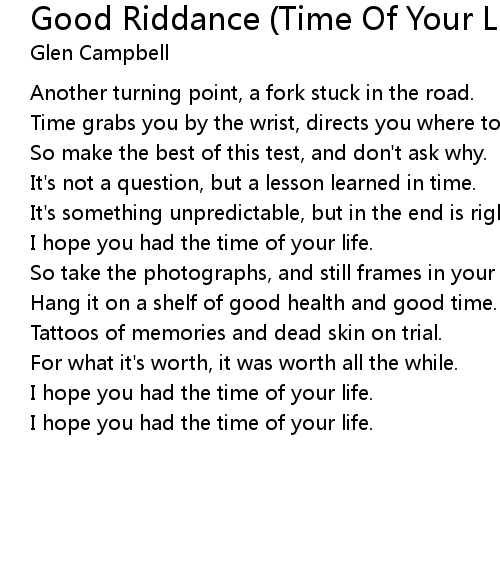 I hope you had the time of your life. |