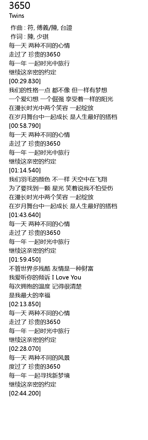 | [02:17.890] | 走过了 珍贵的3650 |