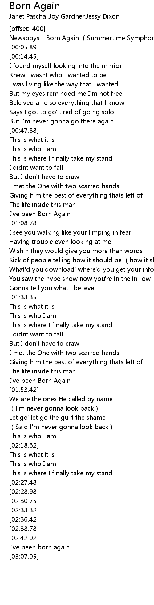 | [00:01.12] | Newsboys Born Again Summertime Symphony Mix |