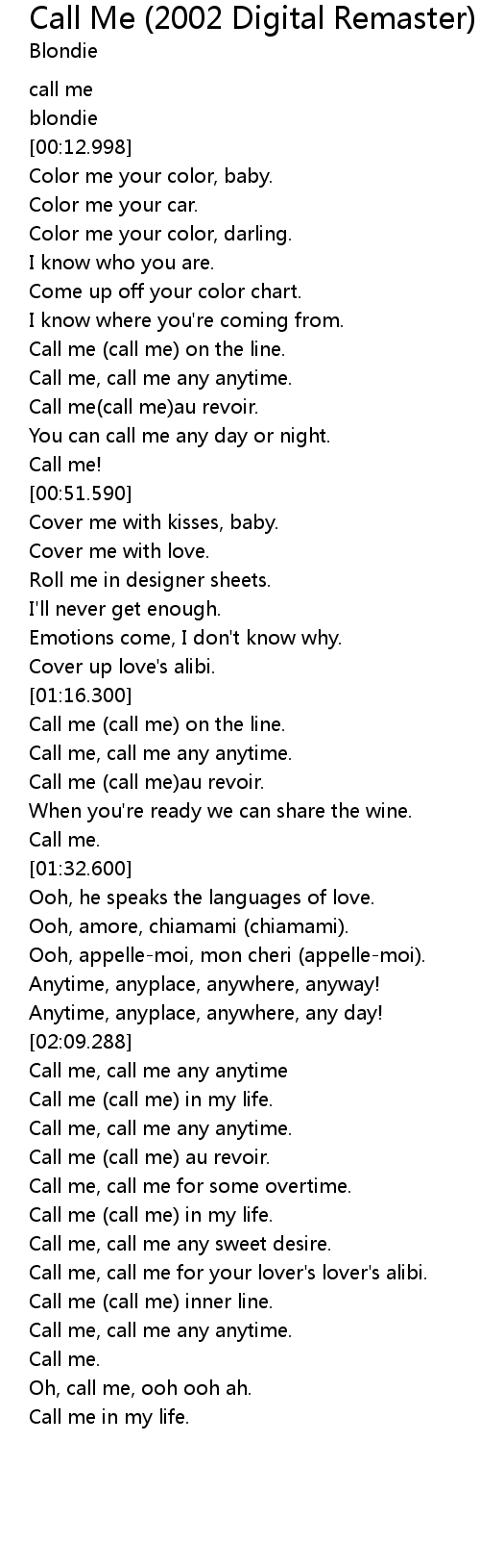 Call me, call me any anytime |