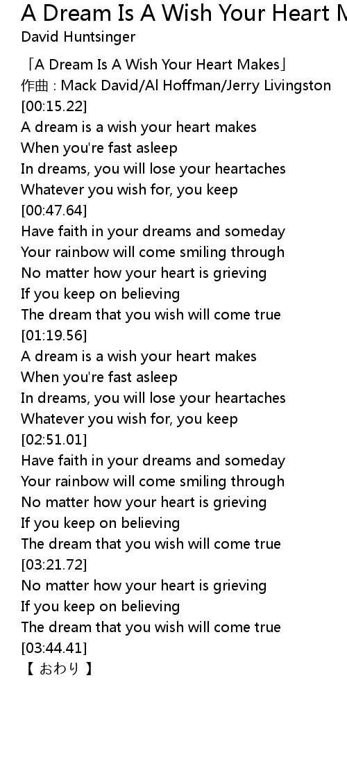 | [00:01.22] | 「A Dream Is A Wish Your Heart Makes」 |