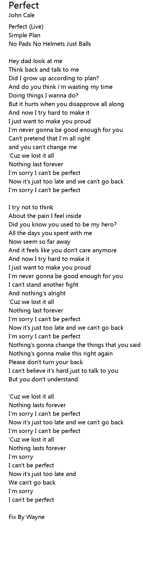 | I'm sorry I can't be perfect | |