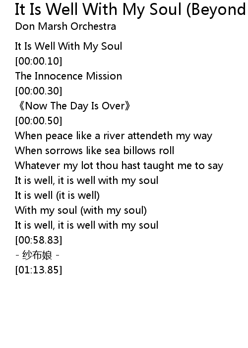 | Song | It Is Well With My Soul (Beyond The Tears Album Version) |
