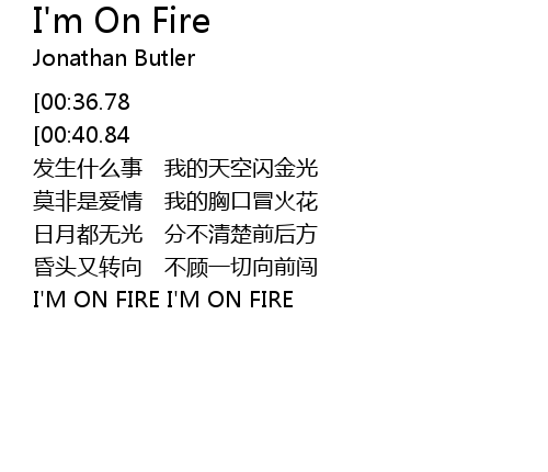 | [00:45.60][00:36.78] | I' M ON FIRE I' M ON FIRE |