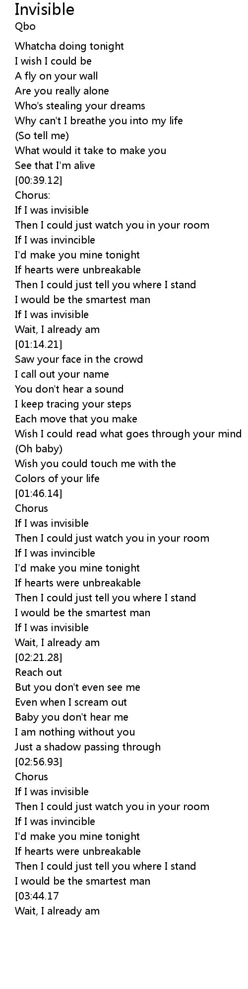 | [03:48.60][03:44.17][03:30.96] | If I was invisible |