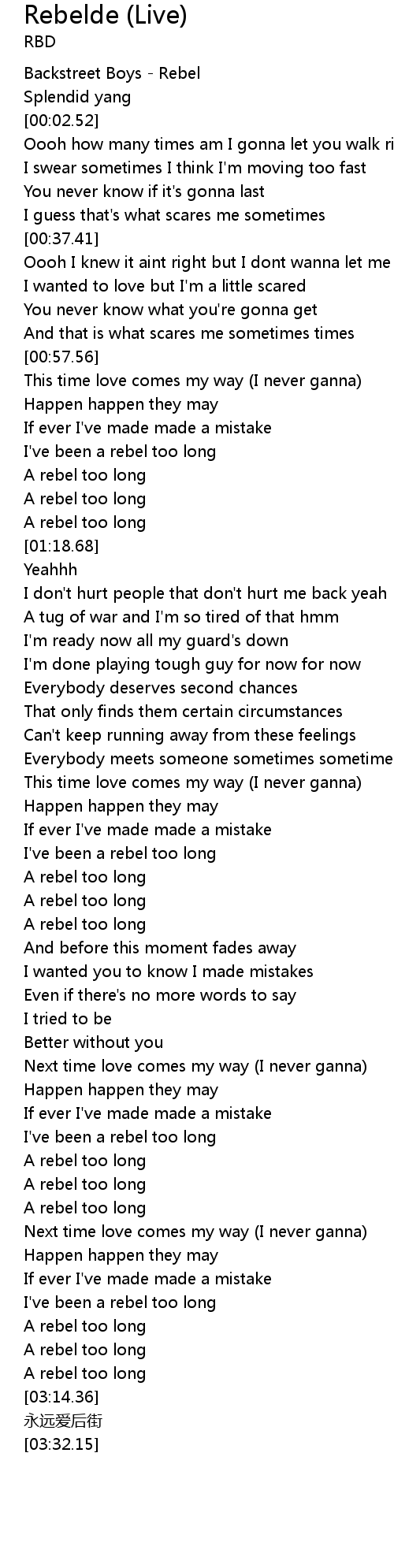 | [00:00.52] | Backstreet Boys - Rebel |