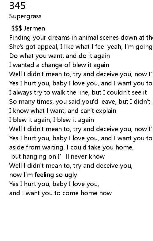 | [01:47.55] | Well I didn't mean to, try and deceive you, now I'm feeling so ugly |
