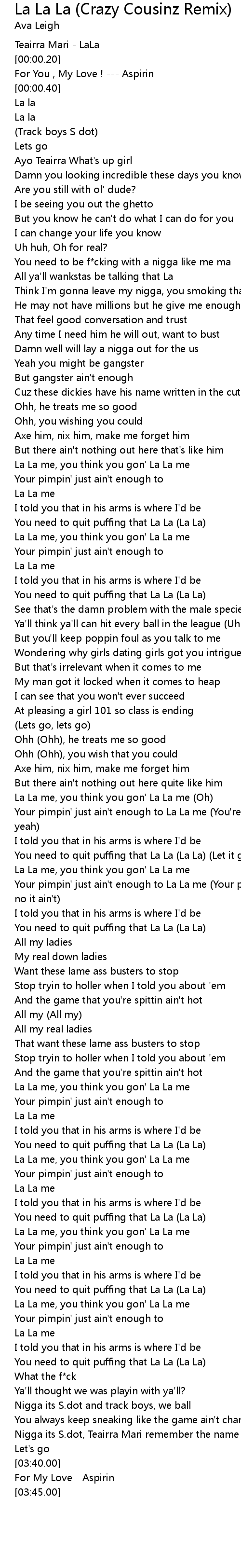 | [03:31.00] | Nigga its S.dot, Teairra Mari remember the name |