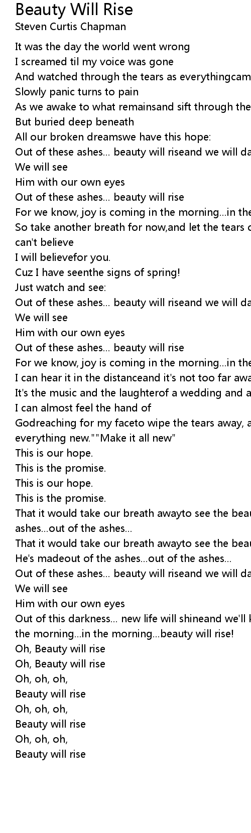 Oh, Beauty will rise |