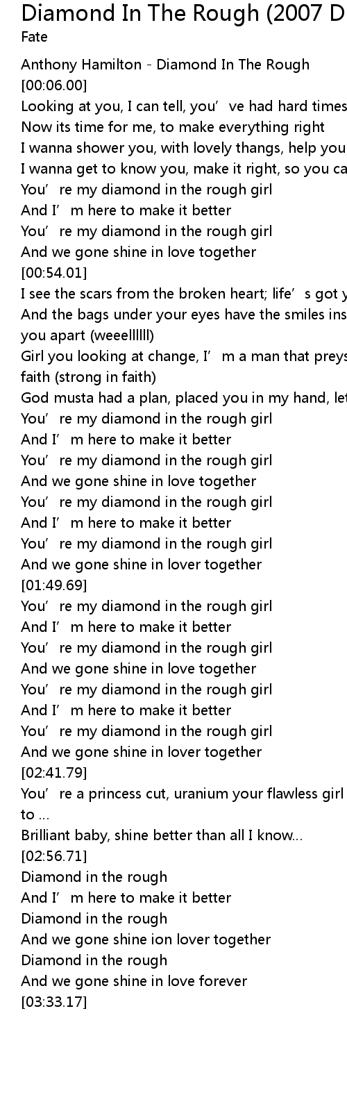 | [00:02.00] | Anthony Hamilton - Diamond In The Rough |