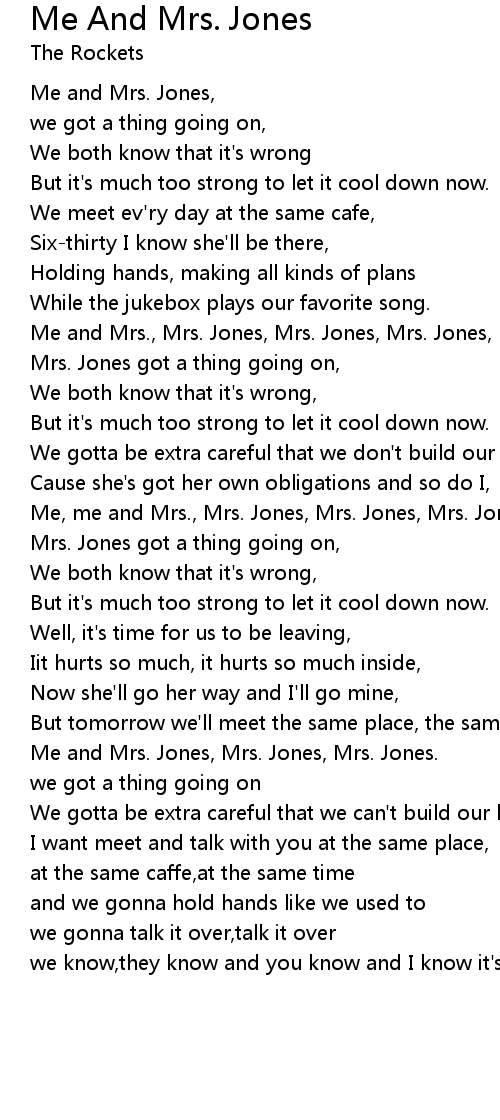 Me and Mrs., Mrs. Jones, Mrs. Jones, Mrs. Jones, |