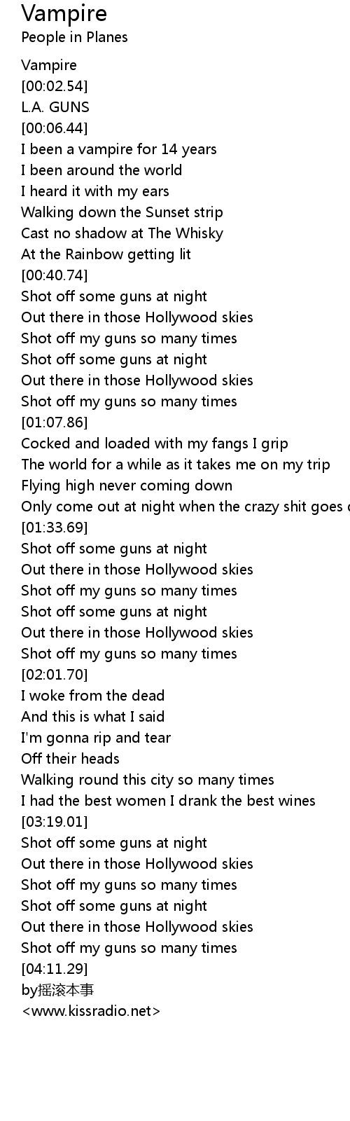 | [00:15.55] | I been a vampire for 14 years |