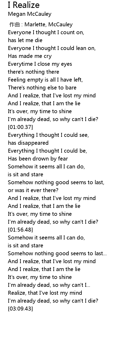 | [02:57.32] | Realize, that I've lost my mind |