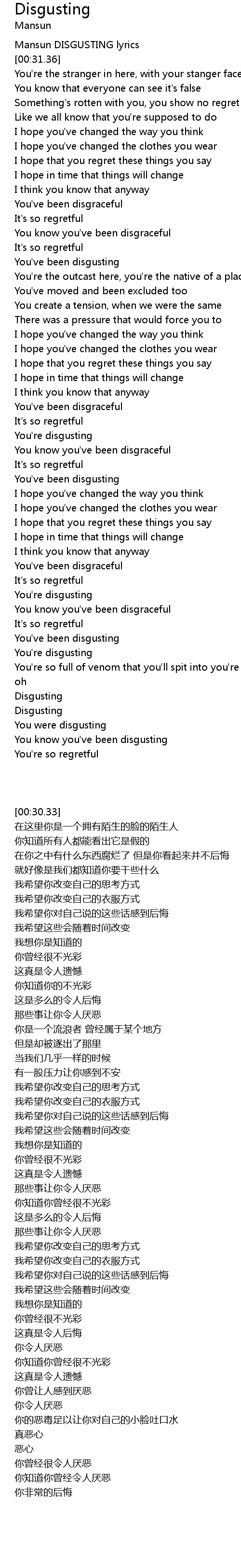 Mansun DISGUSTING lyrics |