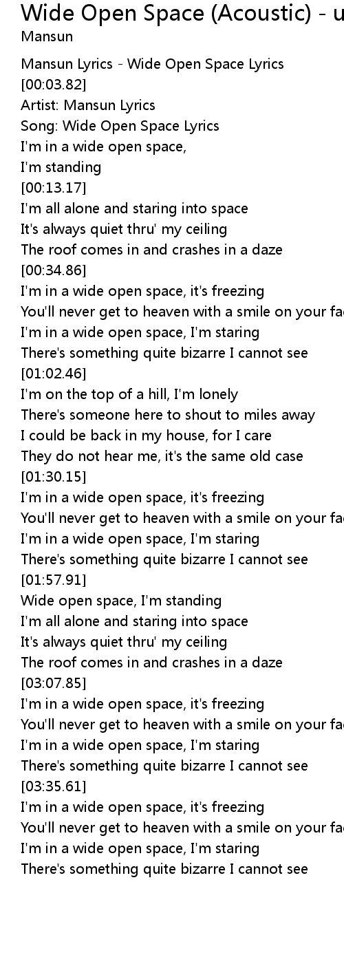 [00:02.67] Mansun Lyrics - Wide Open Space Lyrics