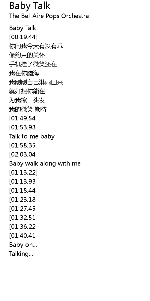 | [02:12.82][01:53.93][00:59.47] | baby talk to me |