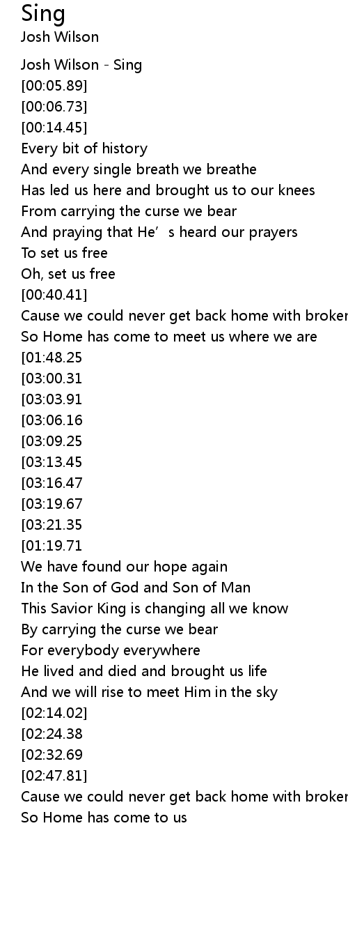 | [03:27.53][03:03.91][01:51.08][00:57.09] | Sing, He has come to save us |